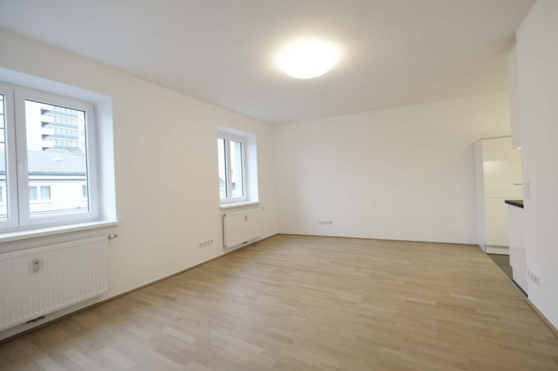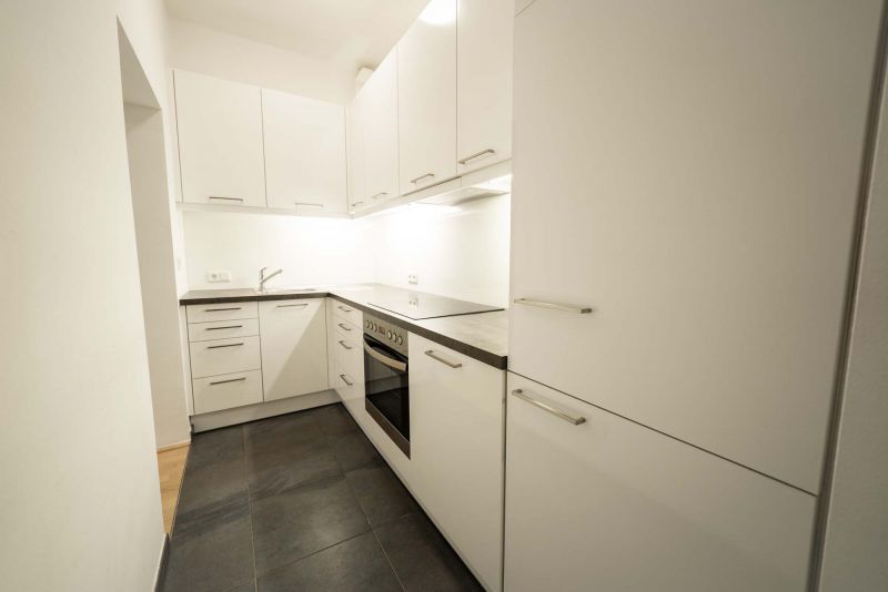 Sehr helle, freundliche und neuwertige Zwei-Zimmerwohnung für 1 Person. Zweckmäßiger Grundriss mit getrenntem Bad und WC, Küchenbereich, Wohn-/Esszimmer, Schlafzimmer, Bad und Vorraum mit großem Garderobenschrank. Fenster mit elektrischen Rollläden und Funk-Fernbedienung, Küche mit sämtlichen Geräten, Deckenlampen in allen Räumen, LIWEST-Kabel-TV.
