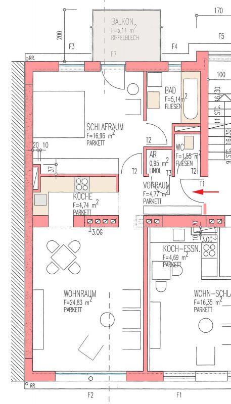 Ein Tiefgaragenplatz kann in der Nachbarschaft um € 120,- angemietet werden.